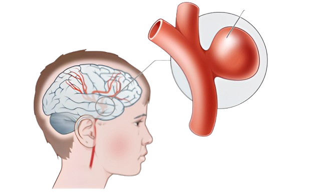 A cerebral aneurysm is a weak, bulging area in the wall of a brain artery that can enlarge and potentially rupture. While small aneurysms may remain asymptomatic, larger ones can press on nerves, causing headaches, vision changes, or neurological deficits. If rupture occurs, it leads to a life-threatening hemorrhage, often presenting with a sudden severe headache and neurological decline. Risk factors include high blood pressure, smoking, genetic predisposition, and trauma. Diagnosis typically involves CT, MRI, or angiography. Treatment may include surgical clipping or endovascular coiling. Early detection and intervention are vital to prevent rupture and preserve brain health.